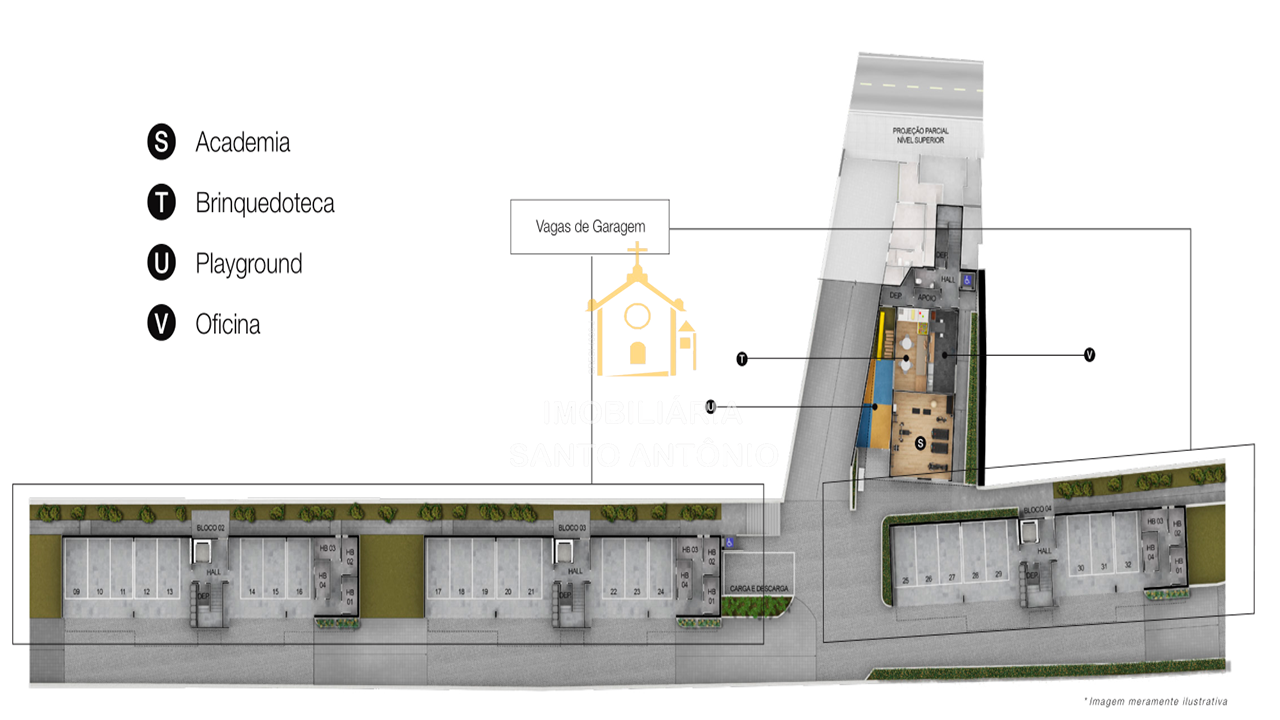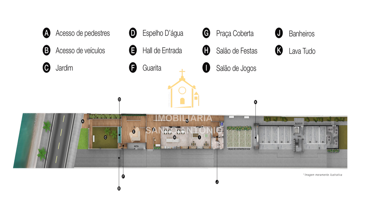 - Vagas de estacionamento para visitantes;