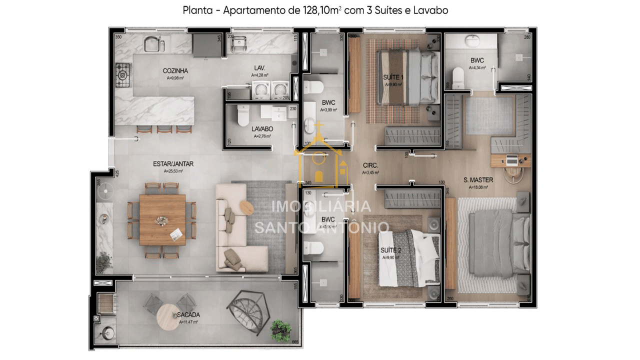 128,10 m² Privativos
